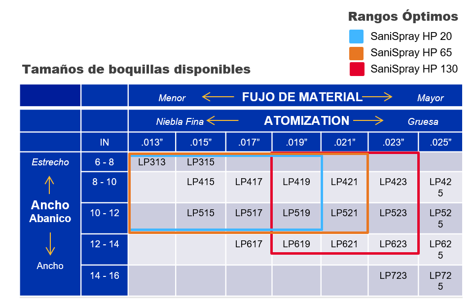 - Cobertura para una aplicación constante de alta producción o pulverización fina.